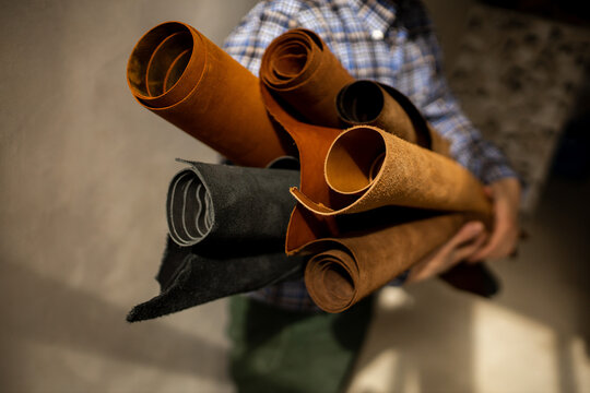 Leather craftsmanship in artisan workshop