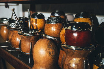 Set of gourd cups with silver rims