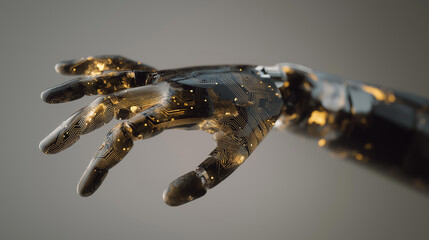 An industrial robot arm silhouette double-exposed with human fingerprints and circuit patterns, symbolizing automation balanced with human oversight. cinematic color correction, natural uneven