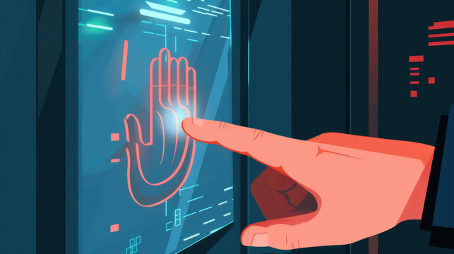 3D Handprint on Digital Interface | Biometric Authentication Concept
