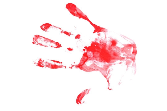 Bloody handprint creating a dark symbol of crime, horror, and violence with dripping red liquid on transparent background