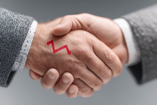 Isolated handshake with exchange arrows overhead illustrating business agreement, high quality realistic mirostock depiction