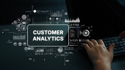Person Engaging with User Analytics and Data Visualization on Computer Keyboard in Modern Workplace Setting. Asymptotic smart data analytic.