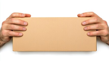 Two hands holding smartphones with blank white screens on a transparent background