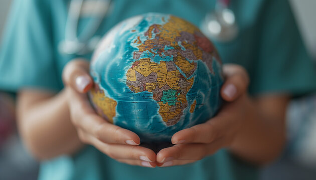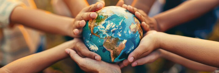 A diverse group of hands holding a globe, symbolizing unity, collaboration, and global responsibility. This image embodies the essence of coming together for a better world.