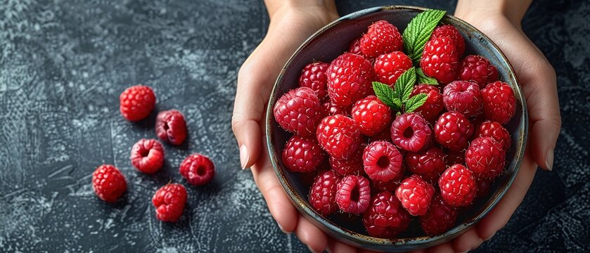 Hands holding several clusters of small, bright red berries with green leaves above a white bucket in a garden, emphasizing the vibrant color, freshness, and nutritional value of these wild fruits.