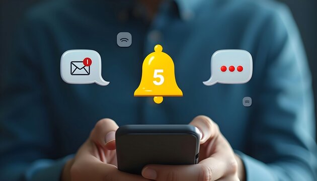 Person engaging with smartphone amidst social media notifications