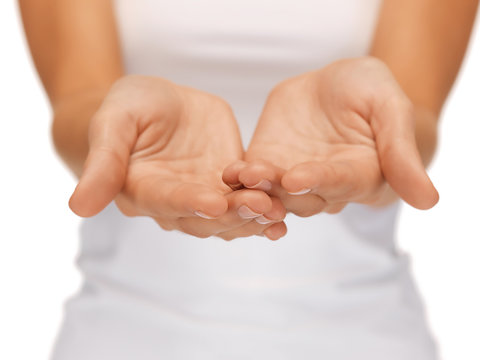 Female black hands isolated white background showing gesture holds something or takes, gives. african woman hands showing different gestures