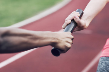 hands passing relay baton
