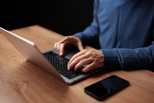 Hands Typing On Laptop Keyboard With Smartphone Nearby Images