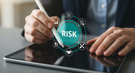 A businessman uses a touchscreen tablet to analyze financial growth trends with dynamic graphs. This image captures technology and innovation in a professional work environment. Copula
