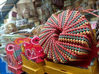 handycraft closeup details in the artisan market in otavalo ecuador