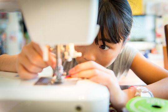 Young asian girl sowing