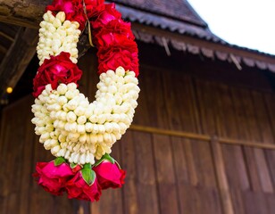 A string of sweet scented jasmine blossoms with a copy space image