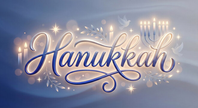 Hanukkah lettering isolated on white background, perfect for holiday greetings, invitations, and festive designs, conveying the spirit of the festival of lights with elegance and simplicity