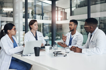 We need to go over what happened. Shot of a group of doctors having a meeting together.