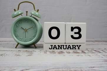 Wooden Calendar Showing the Date of January 3rd. Day 3 of January month