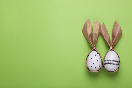 Easter eggs on green background with grass border