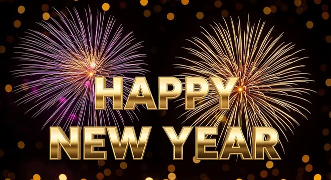 Happy new year fireworks celebration with festive text