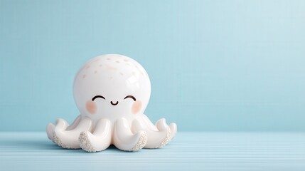 A cute, smiling ceramic octopus figurine sits against a light blue background, showcasing whimsical design and charm.