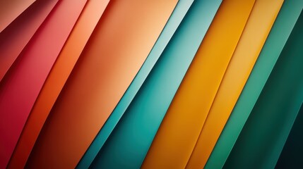This abstract art piece features a dynamic arrangement of colorful diagonal lines, merging shades of orange, teal, and yellow in a geometric pattern.