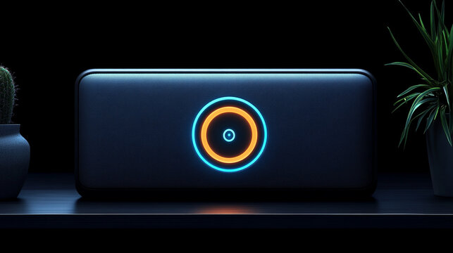 A sleek black NAS enclosure sits on a modern desk, front panel lit with dual drive bays and multiple connectivity ports. A clean, high-tech scene representing advanced data storage and networking.
