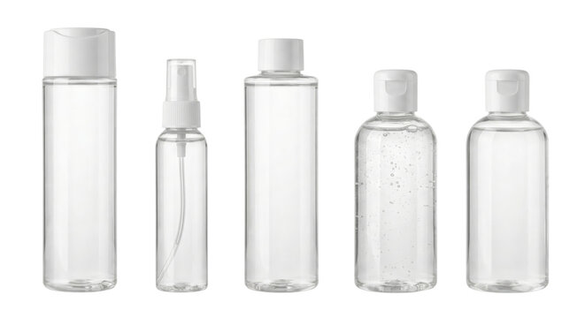 collection of empty transparent plastic bottles isolated on a clean background with clear forms