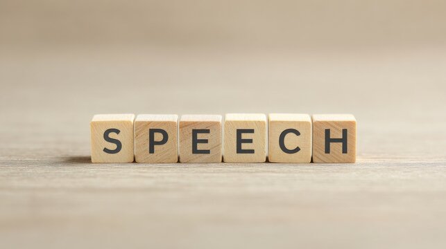 A wooden block with the letters S, P, E, C, H, and E arranged in a row