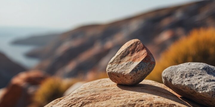 Gnarled ancient tree standing on rocky plateau bathing in warm golden light
