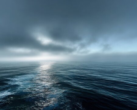 Gloomy ocean under a hazy sky