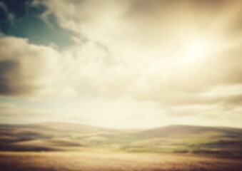 Hazy golden landscape with clouded sky