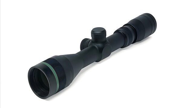 Matte Black Rifle Scope with Green Accents – Transparent Background High-Resolution Image