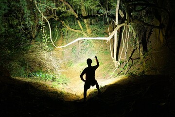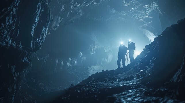 Exploring Caves: Friends with headlamps exploring a cave system.