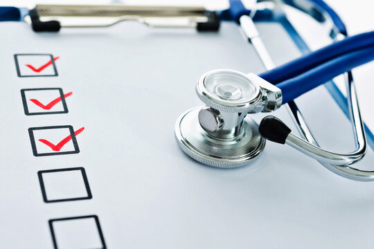 Medical professional completing a checklist, highlighting patient care and healthcare management efficiently in the medical field.