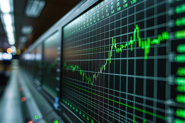 blue and green market trading indicators, in the style of digital art, light green and black for Financial and investment business concepts