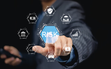 Risk assessment and management concept, Businessman reducing risks business, Financial, Investment, Evaluation measure analytics technology, Low levels, Health, Human, Insurance, Transport, Data