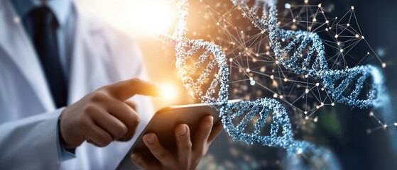 Doctor use AI and Artificial intelligence enhance personalized healthcare by visualizing DNA and organ data in futuristic interfaces.