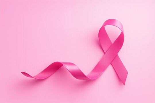Modern 3D pink awareness ribbon on a soft pastel pink background, symbolizing Breast Cancer Awareness Month (Pink October). Elegant and minimal design representing support, prevention, and hope.
