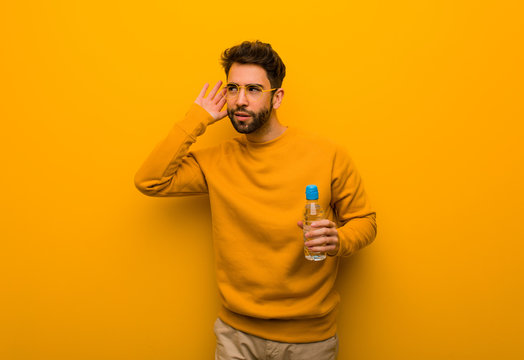 Young man try to listening a gossip