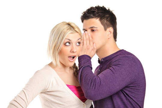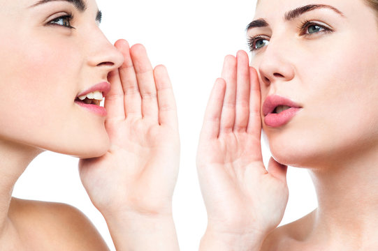 Young woman whispering something to her frind.