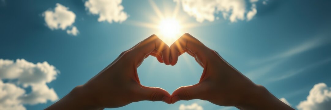 A fantastic scene with pastel colored heart clouds overlapping in the sky