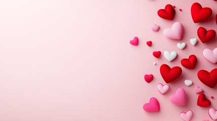 A pink background with a cluster of red, pink and white hearts on the right side, leaving ample space for text or a logo.