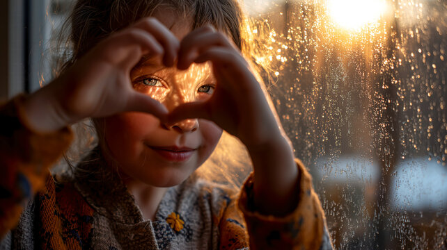 Portrait of a smiling young woman with freckles making a heart shape with her hands