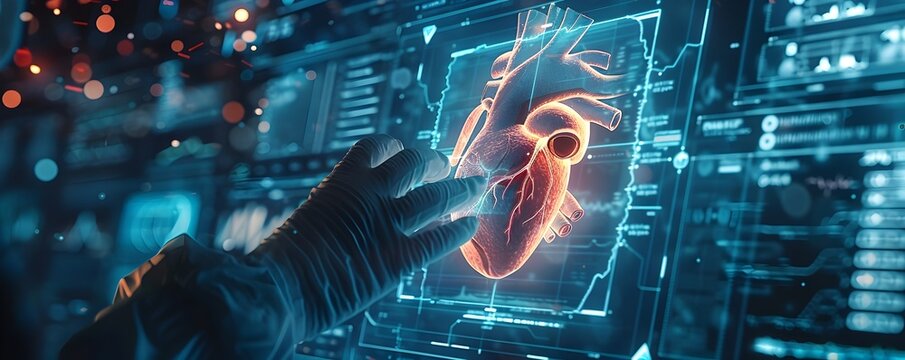 Cardiologist Utilizing Advanced Digital Diagnostic Tool to Map Patient s Heart Health in Futuristic Healthcare Setting