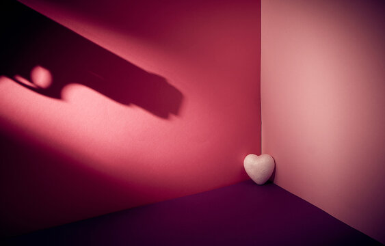 Silhouette of a hand holding a broken heart on the background of the sunset. Love concept, spat, divorce.