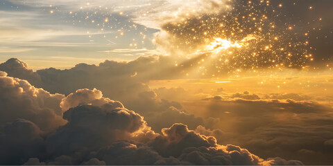 Abstract sky magic: a dramatic cloudscape with sun rays breaking through dark, beautiful clouds