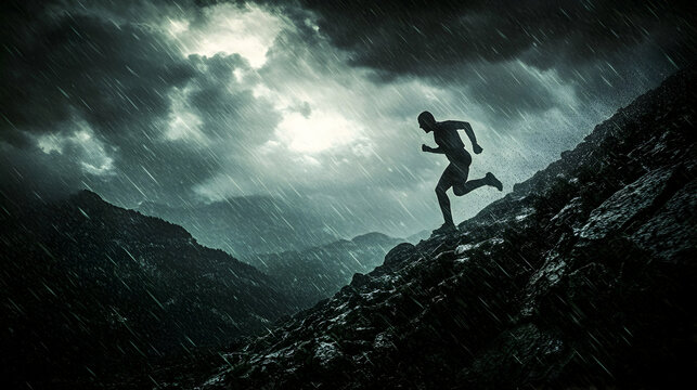 Dinosaur awaits: tyrannosaurus roaring through turbulent storm