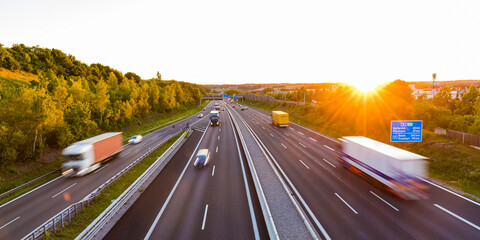View to a motorway at sunset, Leonberg, Germany