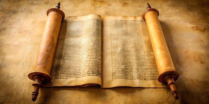 Old manuscript parchment with Hebrew text, depicting an ancient biblical scroll of prophets , ancient, parchment, Hebrew