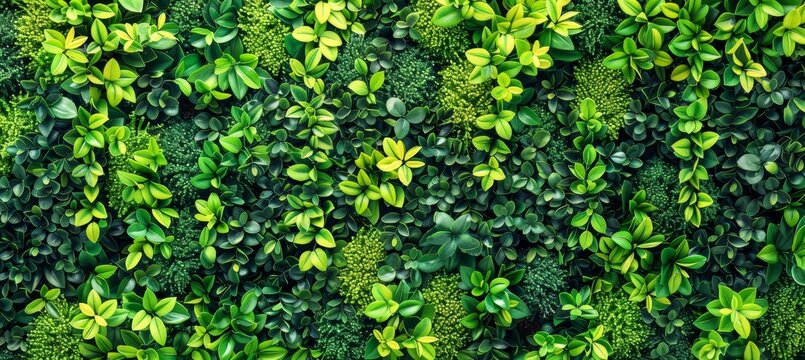 Close up of lush green hedge wall with small leaves in garden   eco friendly evergreen background